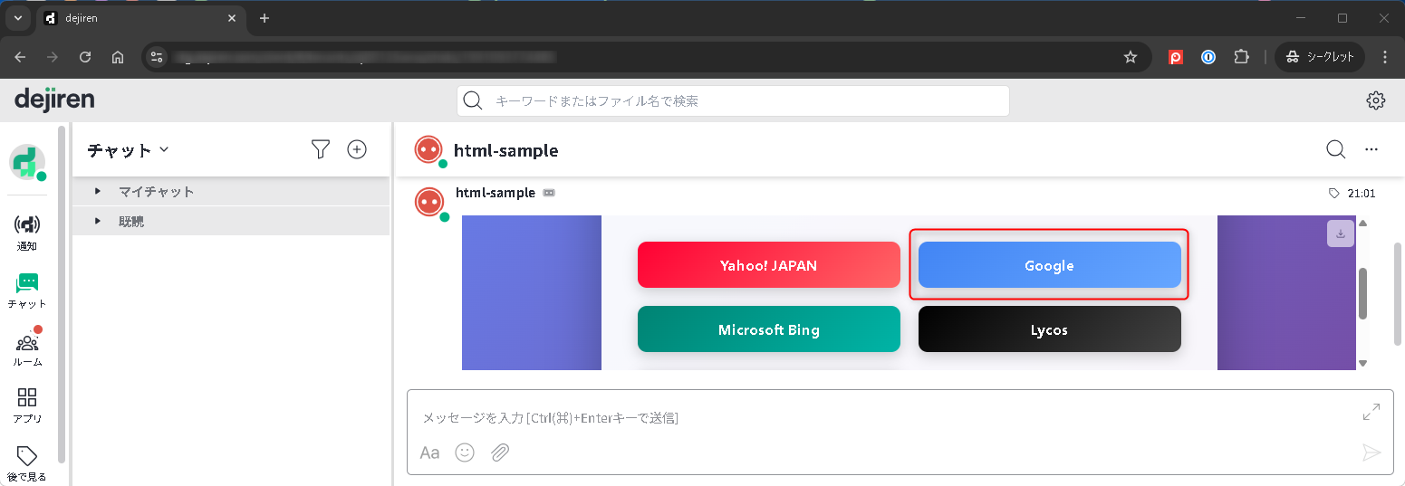 チャットで受信したHTMLファイル内のリンクを