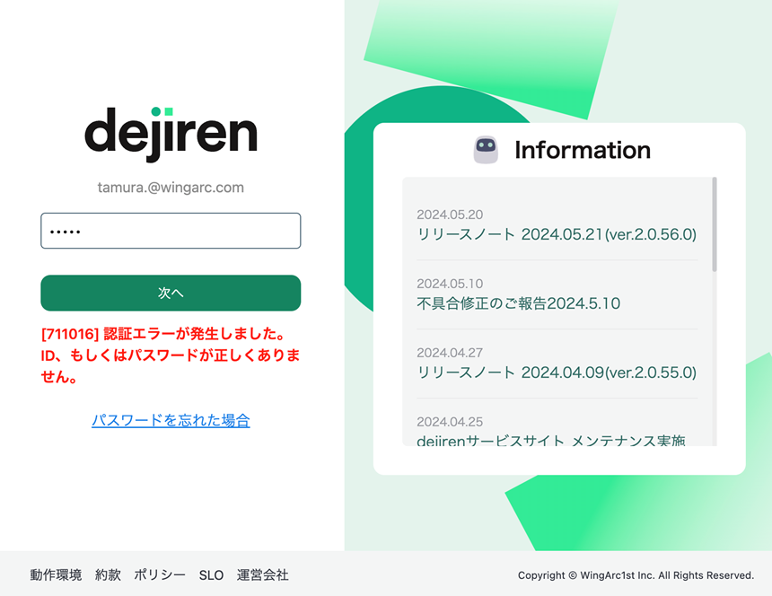 - 二段階認証が有効である場合には、noreply@wp-dev.dejiren.com からの認証コードの通知メールを受信可能な状態であること。