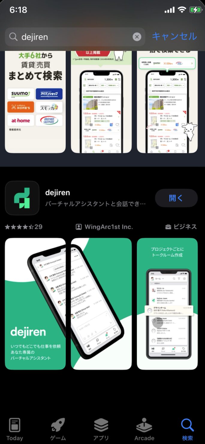 3. 検索結果として表示された「 dejiren 」の「入手」をタップします。