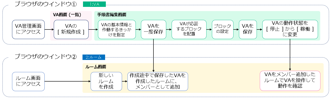 | 一般ユーザー | VA とやりとりするルームの作成 |