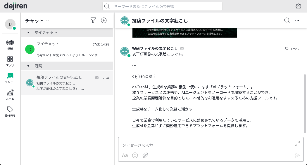 チャットにファイルを投稿したら