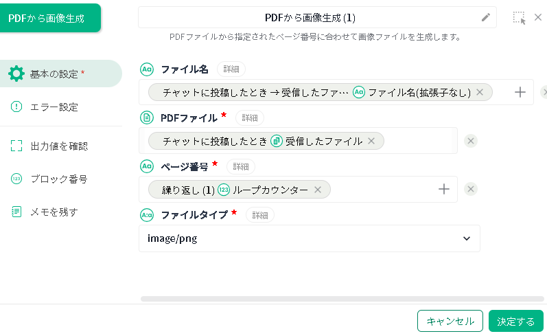 - 【PDFから画像生成】ブロックでは、