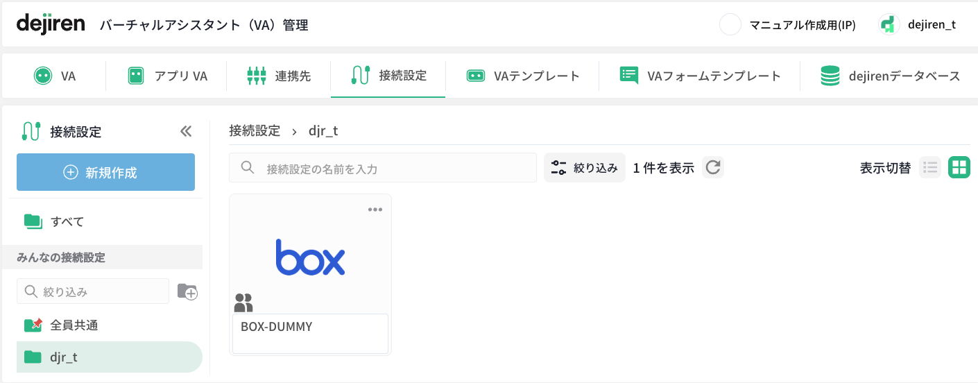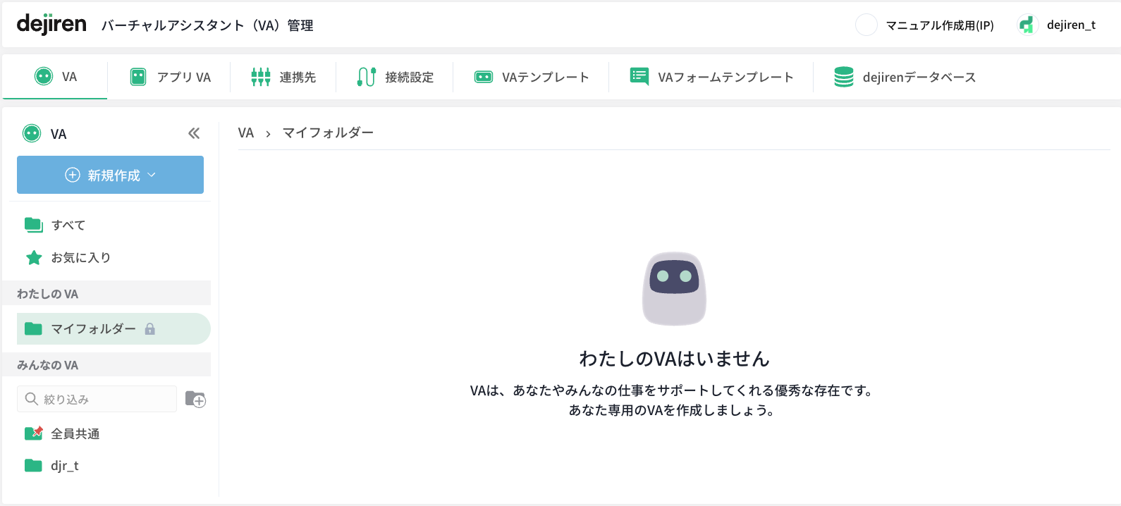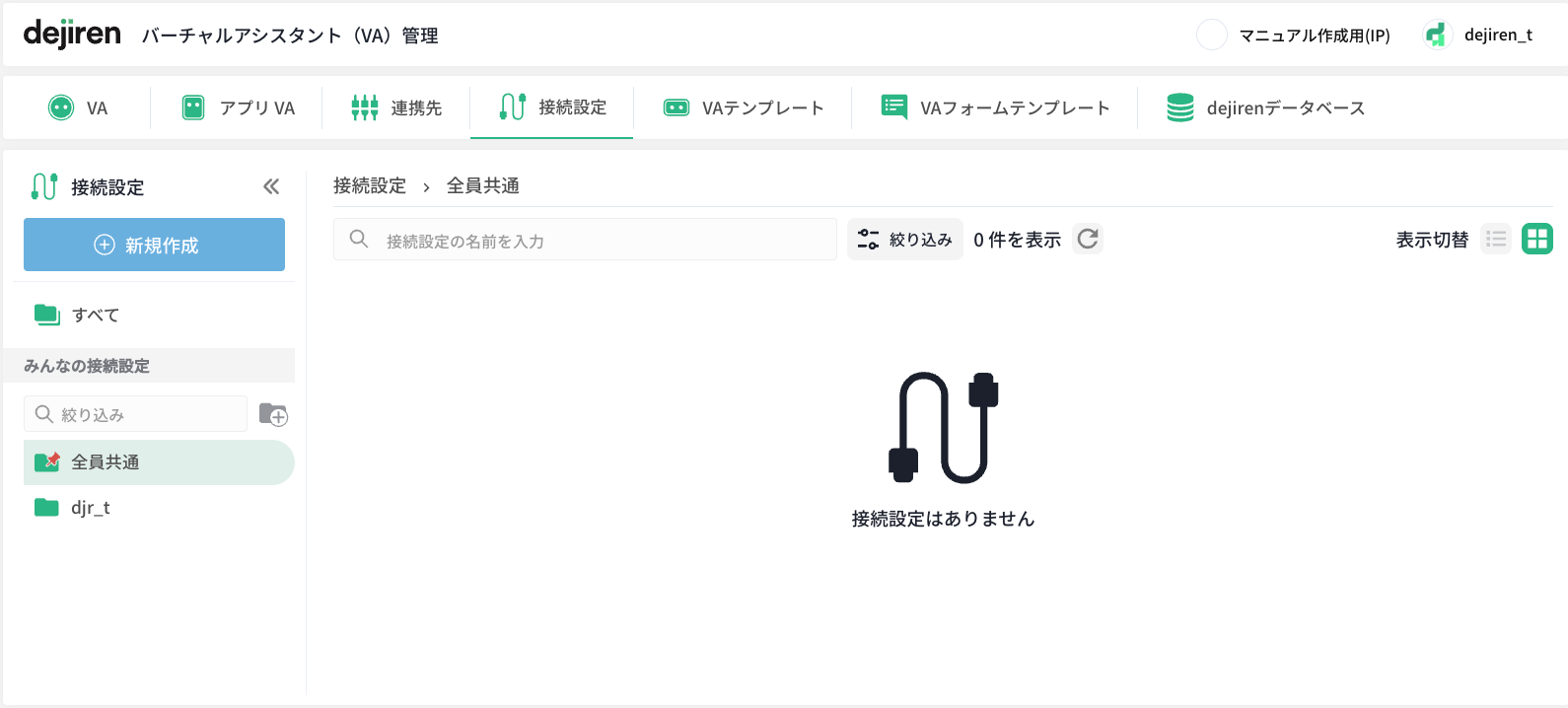 | dejiren | VA 編集権限 (VA 管理者、もしくは VA 編集者ロールを付与されたアカウント | 接続設定 |