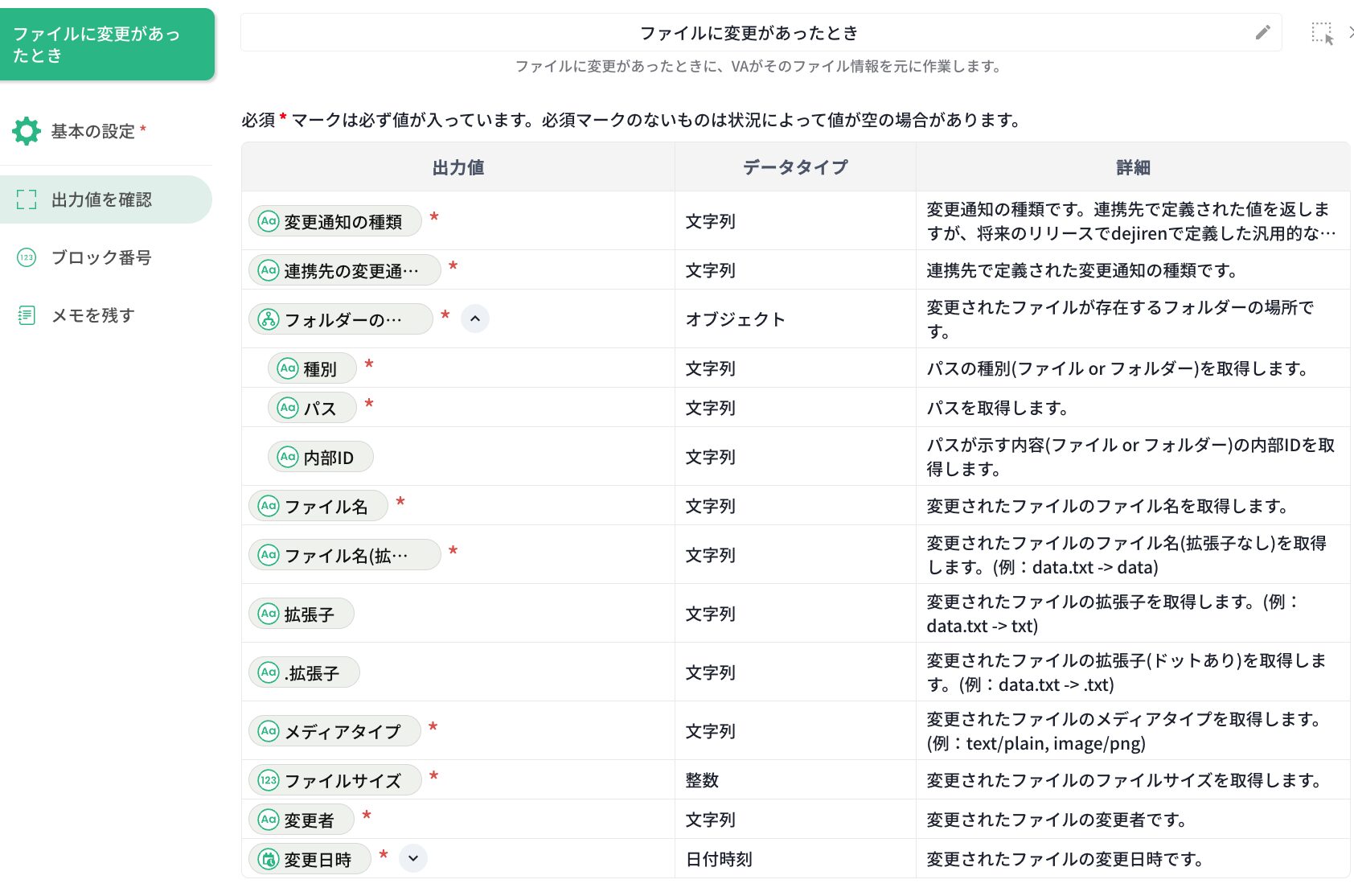 | FILE_UPLOADED | ファイルがこのフォルダにアップロード、 または移動されたとき | × | ○ |