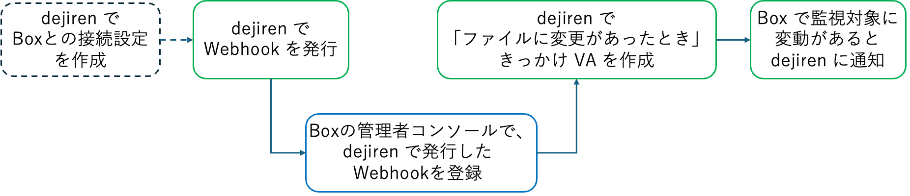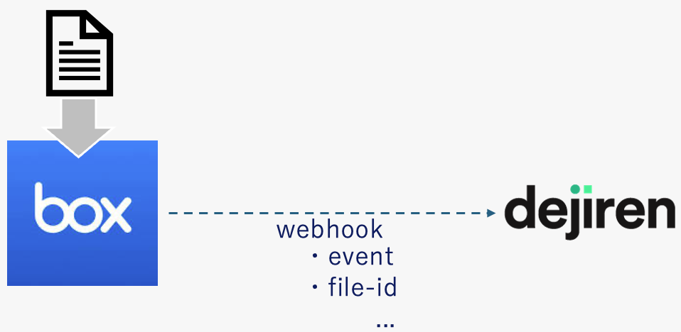 Box から dejiren に Webhook を発報することで VA が稼働する、というものです。