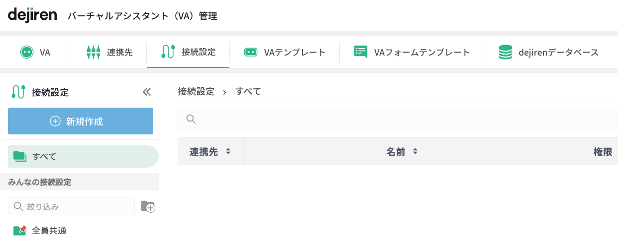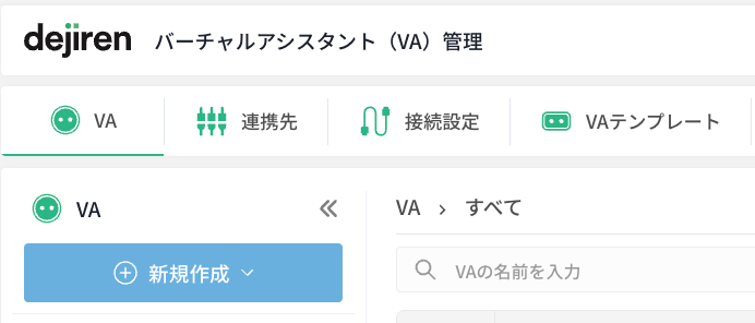 | dejiren | VA編集権限(VA管理者、もしくはVA編集者ロールに属すユーザー) | 接続設定の作成 |