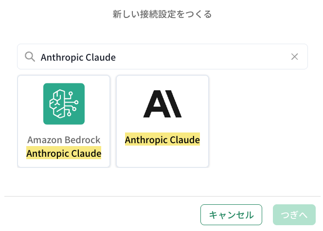 4. 「新しい接続設定をつくる」で、Anthropic Claudeを選択して