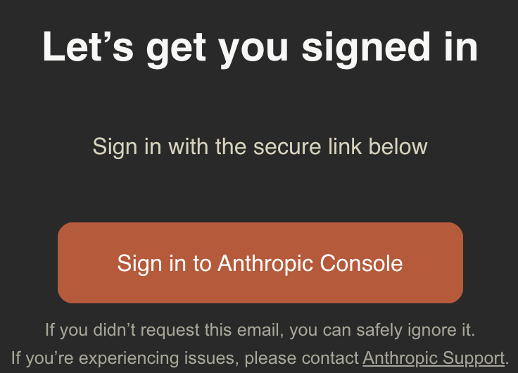 Anthropic Console にサインインするためのリンクが記されたメールが届くので、