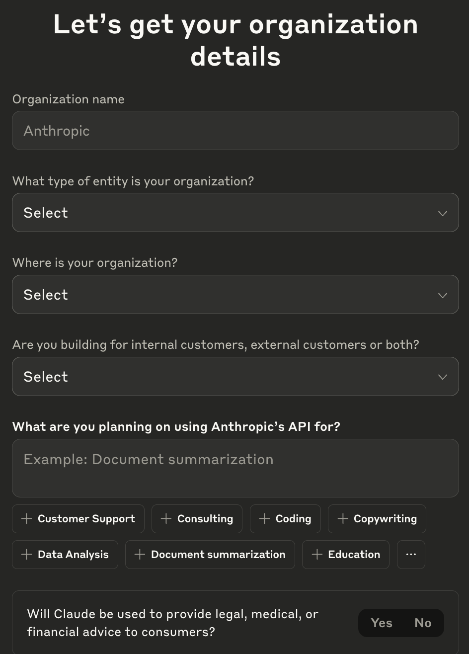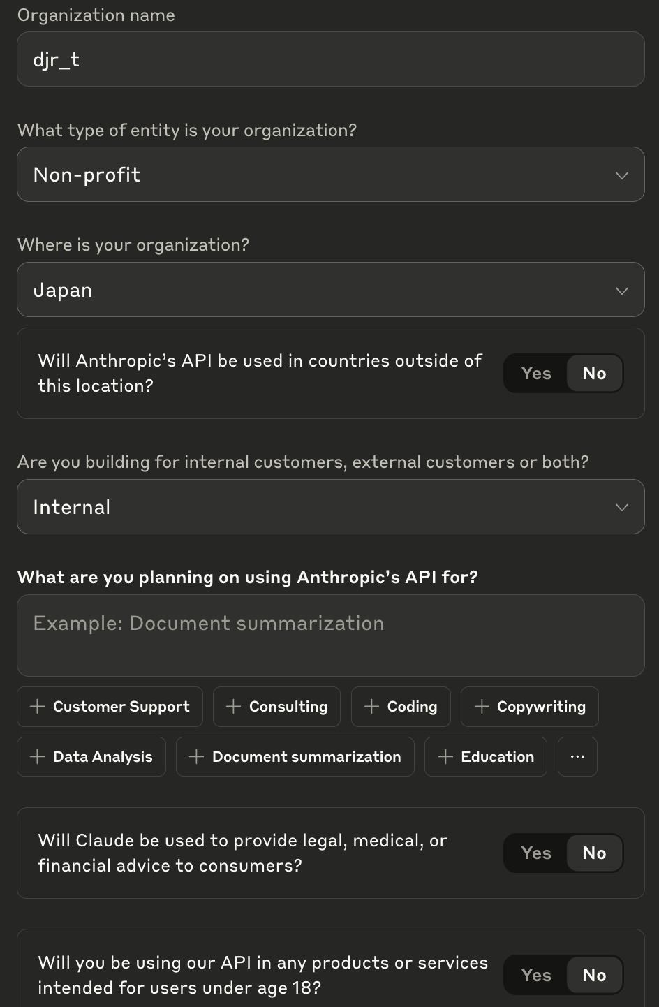 ◆ Anthropic Console アカウントの初回ログインの際には、