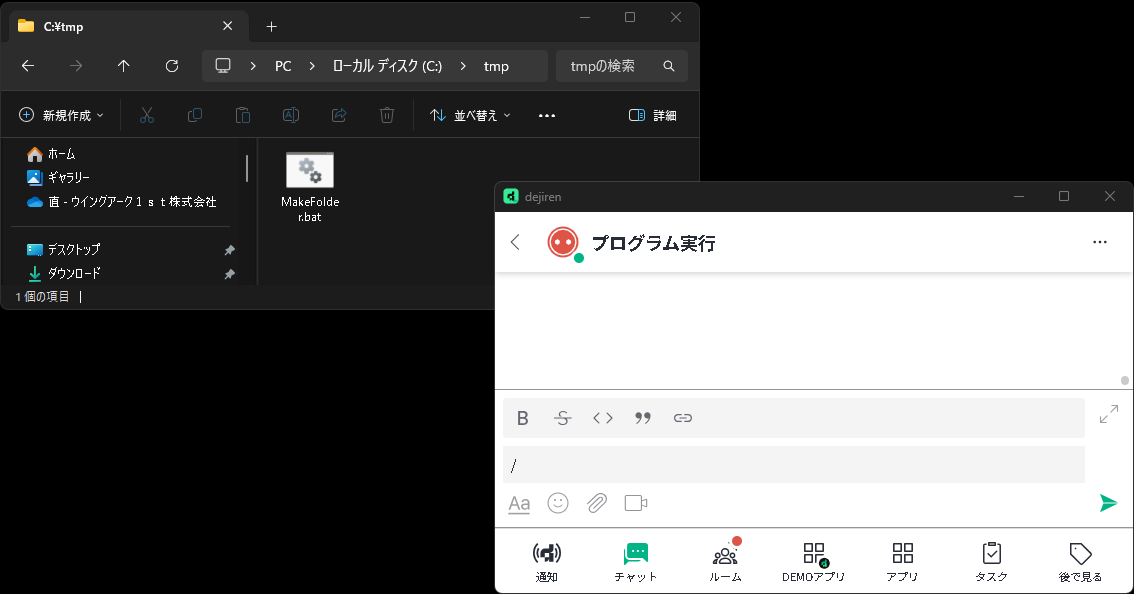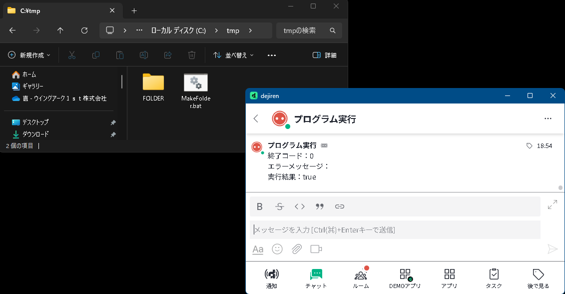 - 「プログラム実行」は、dejiren とブリッジで接続されたオンプレミスサーバ上に保存されたプログラムを dejiren から実行するために使用します。