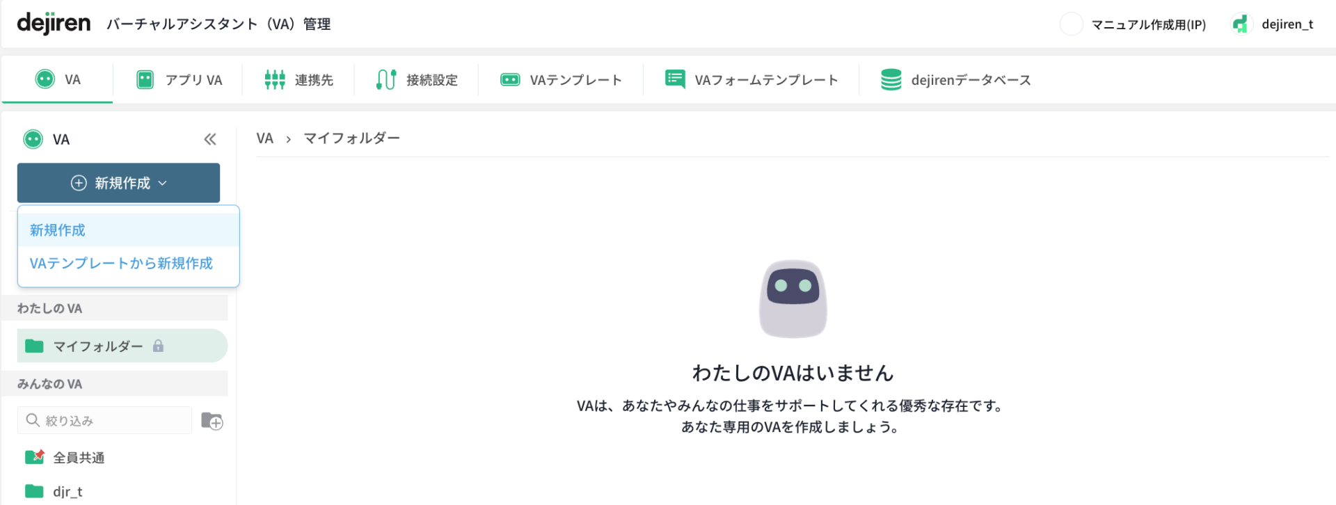 | dejiren | VA編集者ロール、もしくはVA管理者ロールに所属するユーザー | VAの設定 |