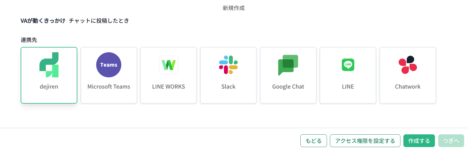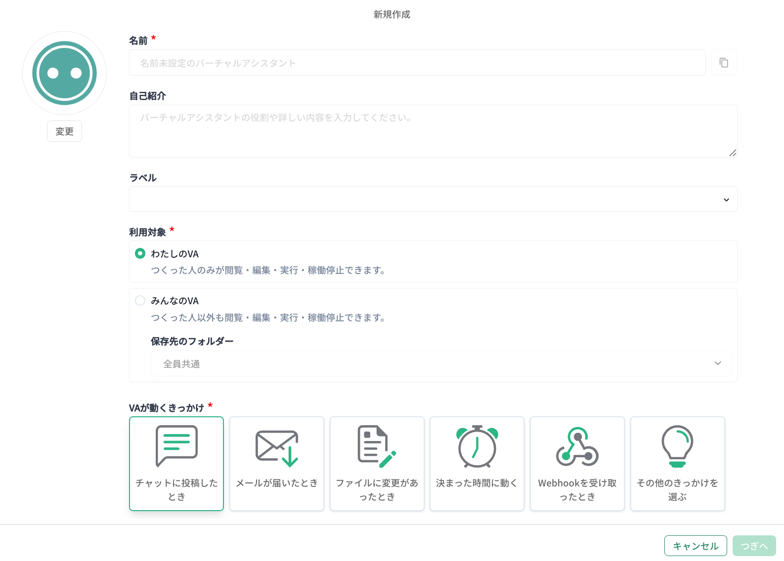 | VA が動くきっかけ | チャットに投稿したとき | − | 必須 |