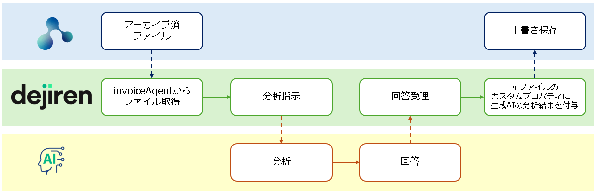 解析を行わせるなど、invoiceAgent と 生成 AI の橋渡しを dejiren が行うケースについて説明します。