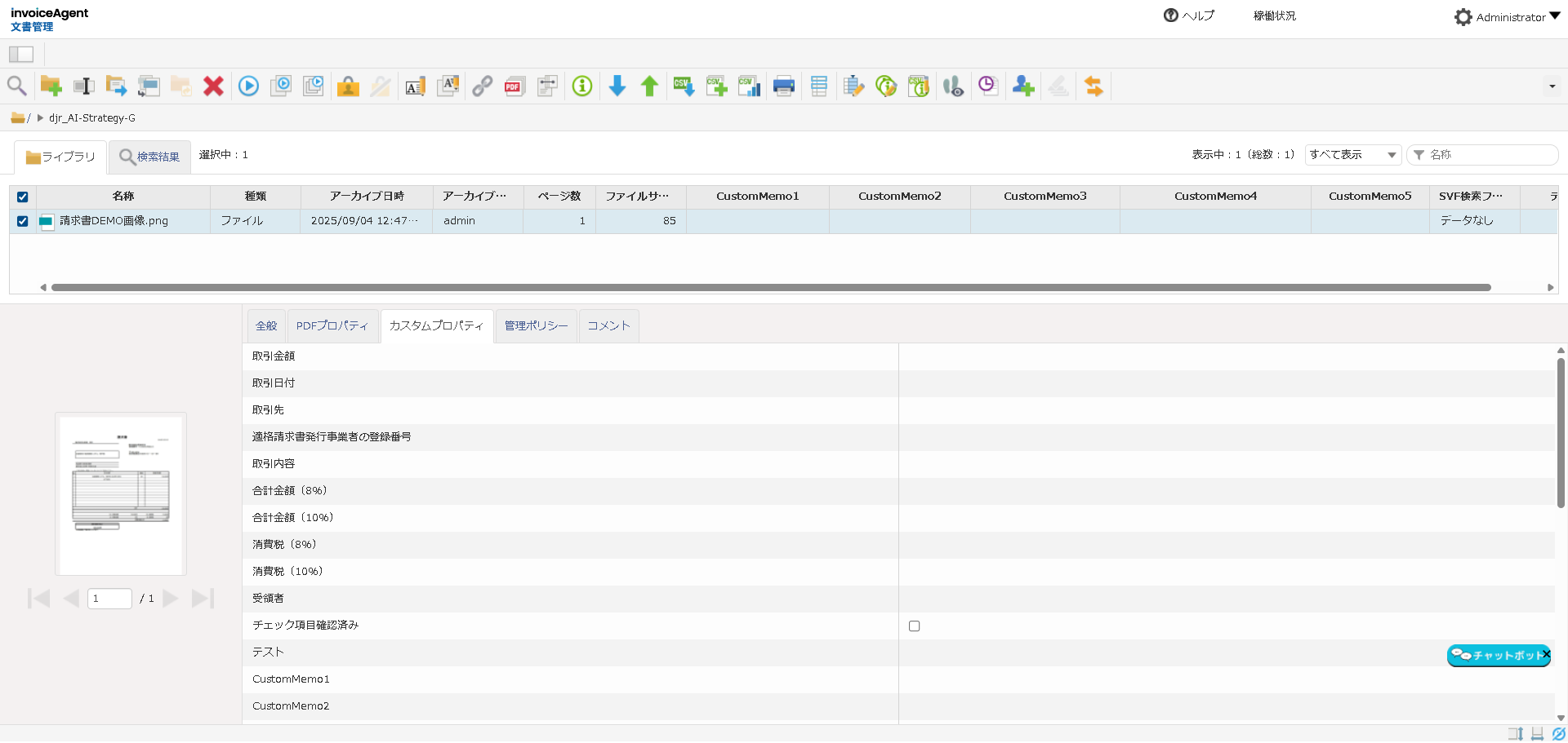 invoiceAgent に保存されている元ファイルのカスタムプロパティに上書きする、