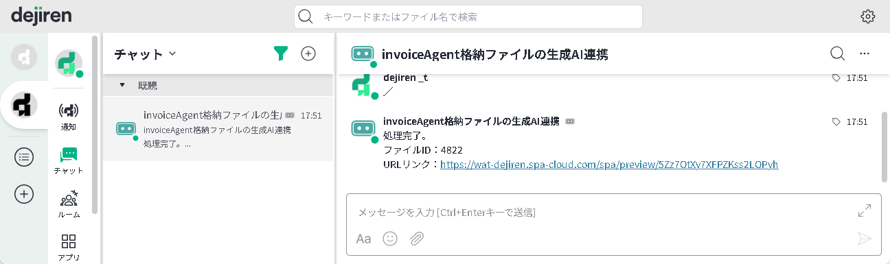 本記事では、invoiceAgent のファイルを dejiren VA を介して生成 AI に連携し