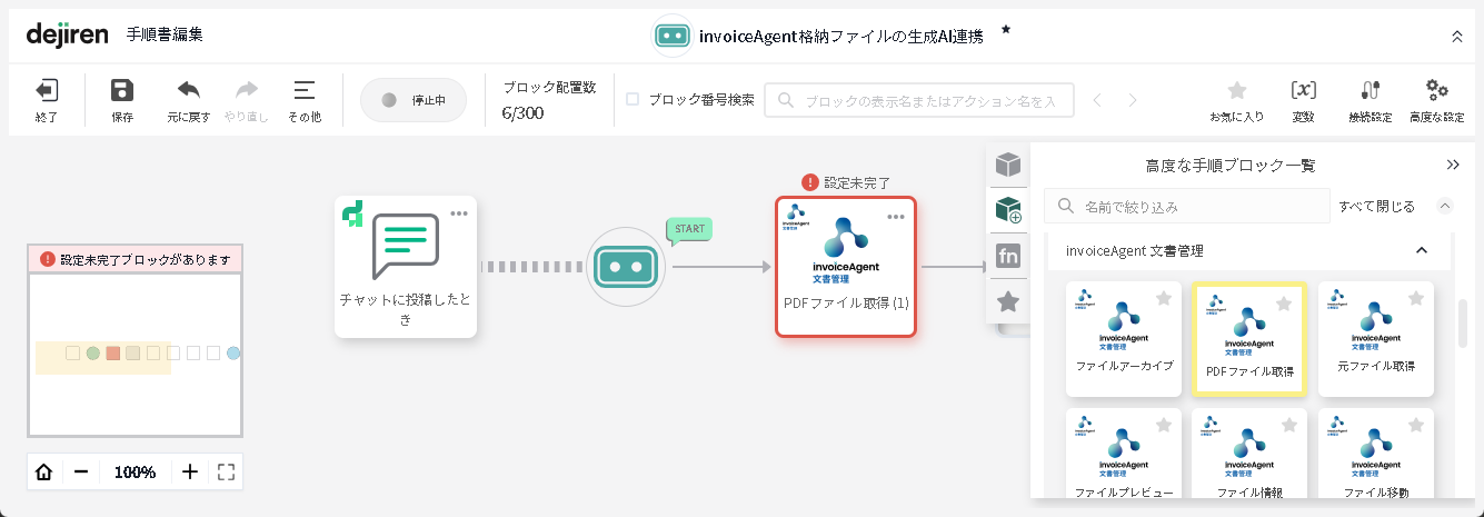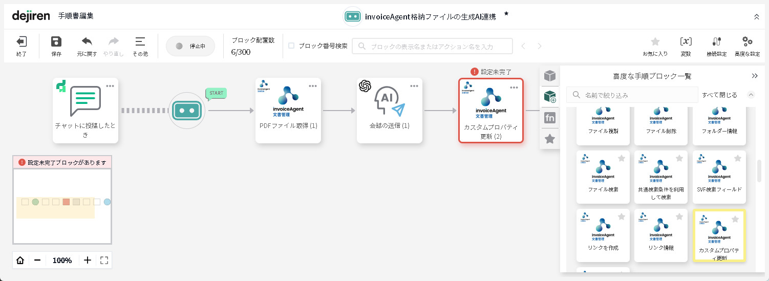 「高度な手順ブロック一覧」>「invoiceAgent 文書管理」グループにある、
