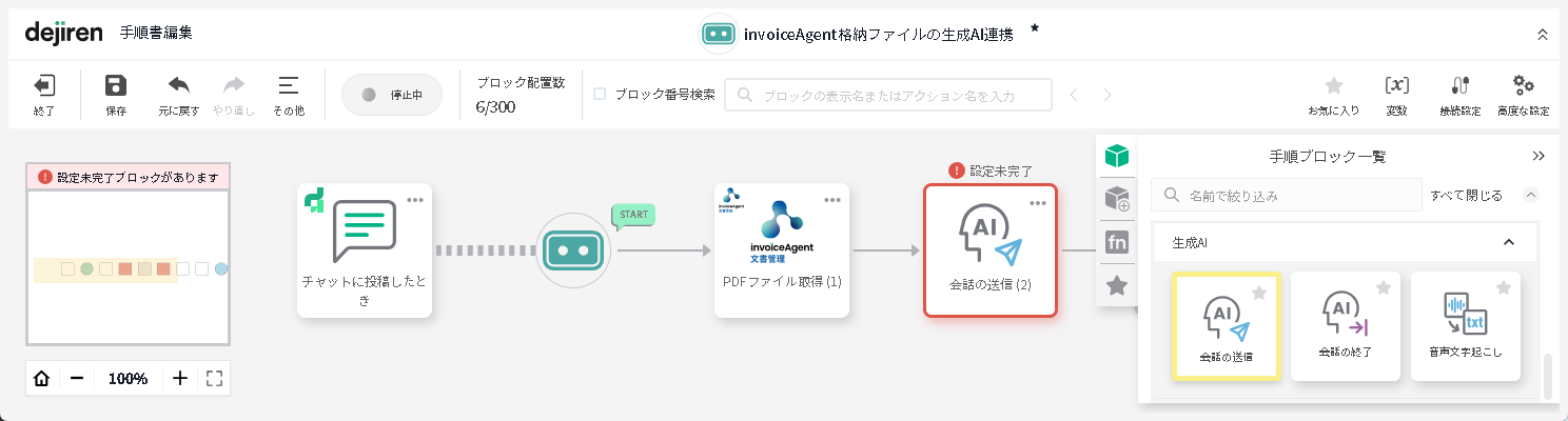 ◆あらかじめ invoiceAgent や生成 AI との接続設定は作成済みである前提でご説明します。