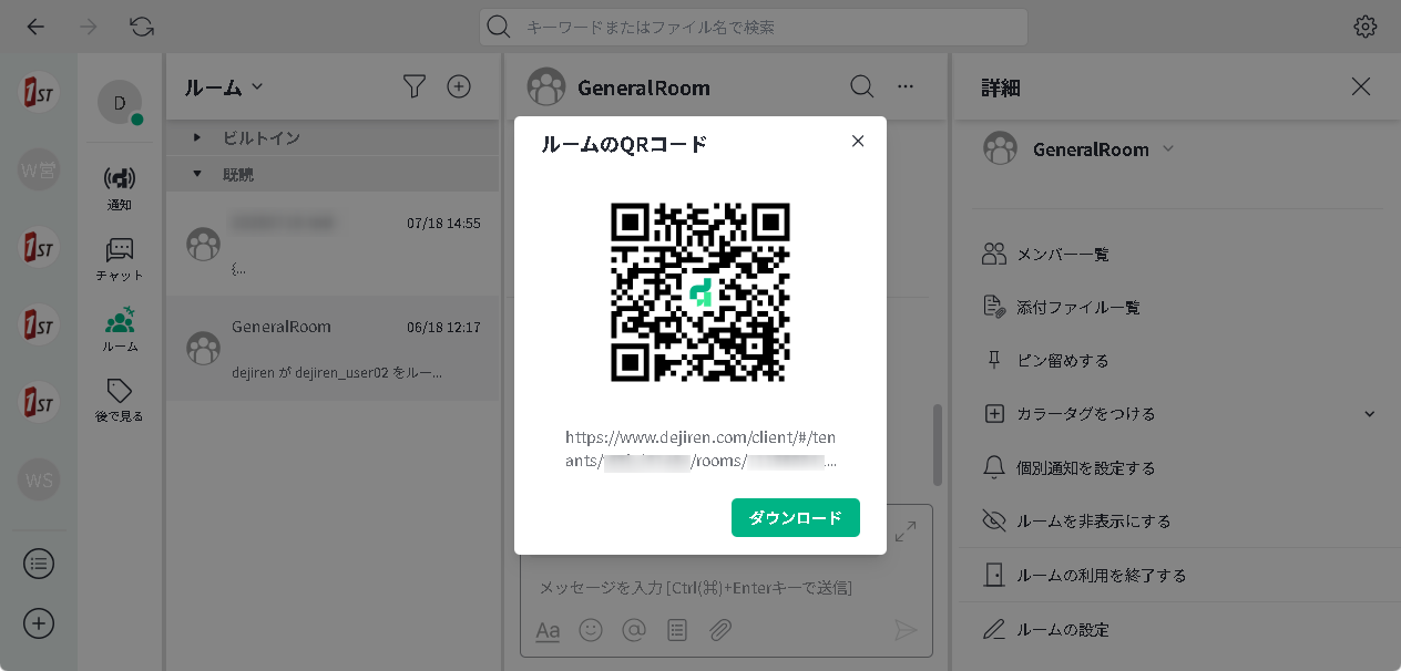 このルームにアクセスするための QR コードが発行できます。