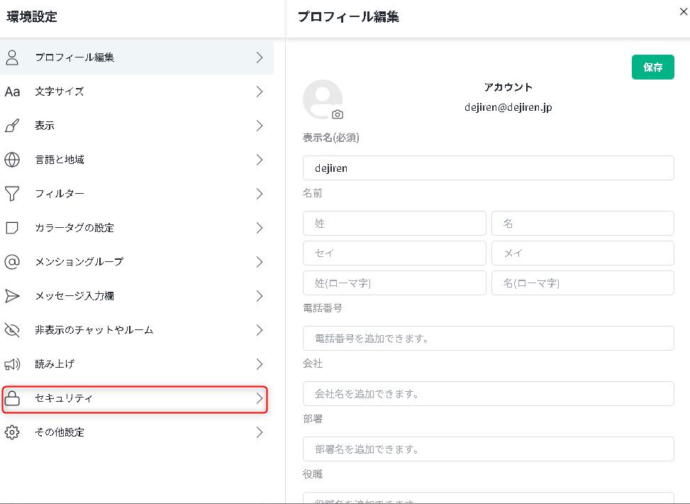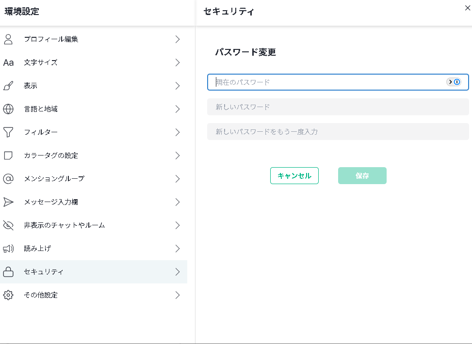2. 「環境設定」の「セキュリティ」をクリックします。