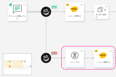 たとえば、SFA から取得したデータを dejiren データベースに新規レコードとして登録し その後にSFA取得情報をチャット画面に表示する、