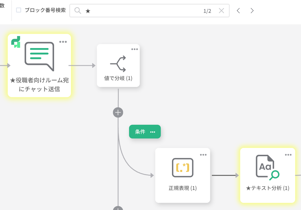 各個別手順ブロックの後に [チャット送信] ブロックを配置して実行結果がどのようであったのかを確認する、という手法をご案内します。