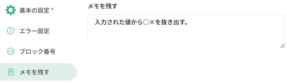 このメモは、手順書編集画面でブロックの上にポインタを合わせるとポップアップで表示されます。