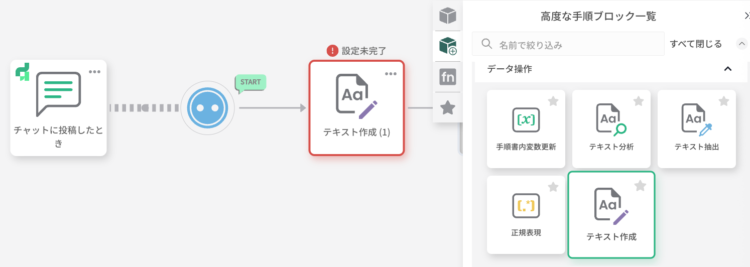 「高度な手順ブロック一覧」>「データ操作」>「テキスト作成」