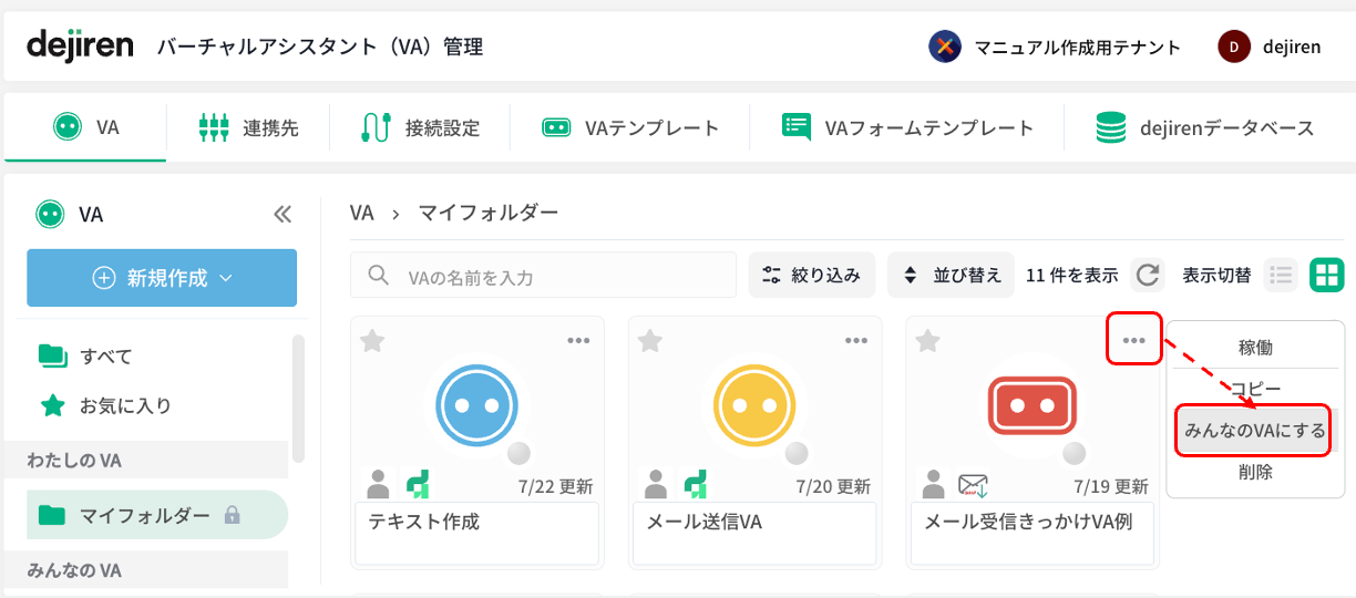 「みんなのVA」に変更したい VA の「…」をクリックして