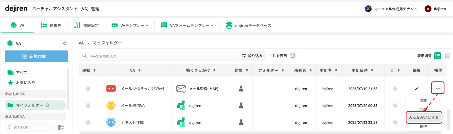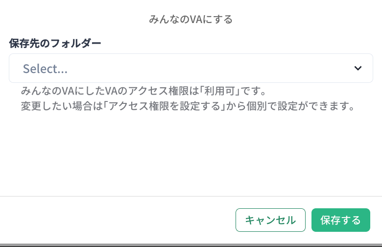 表示されるメニューで「みんなのVAにする」をクリックします。