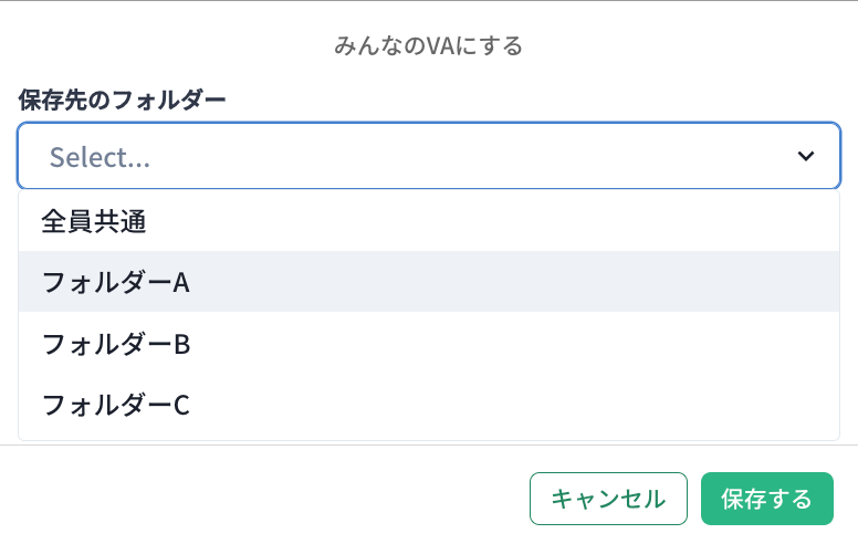 個人ユーザー専用の「わたしのVA」を、複数人で使用する「みんなのVA」に変更することが出来ます。