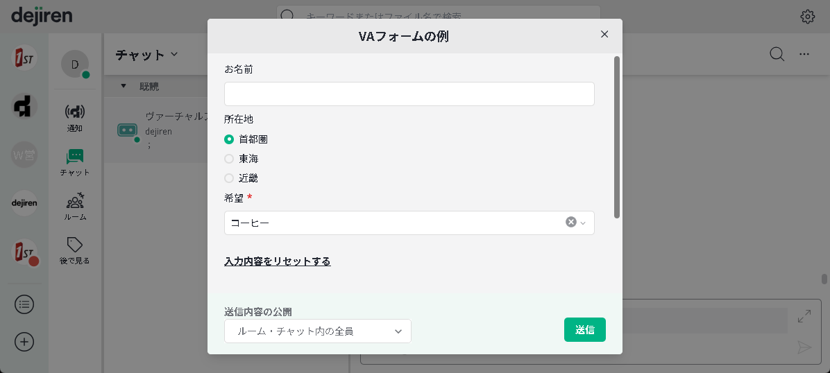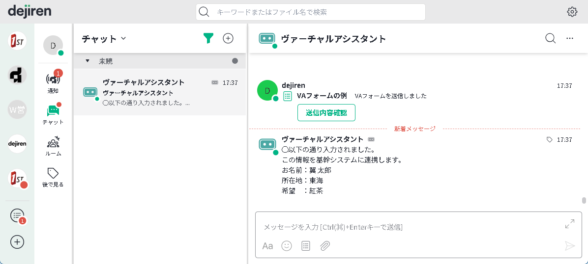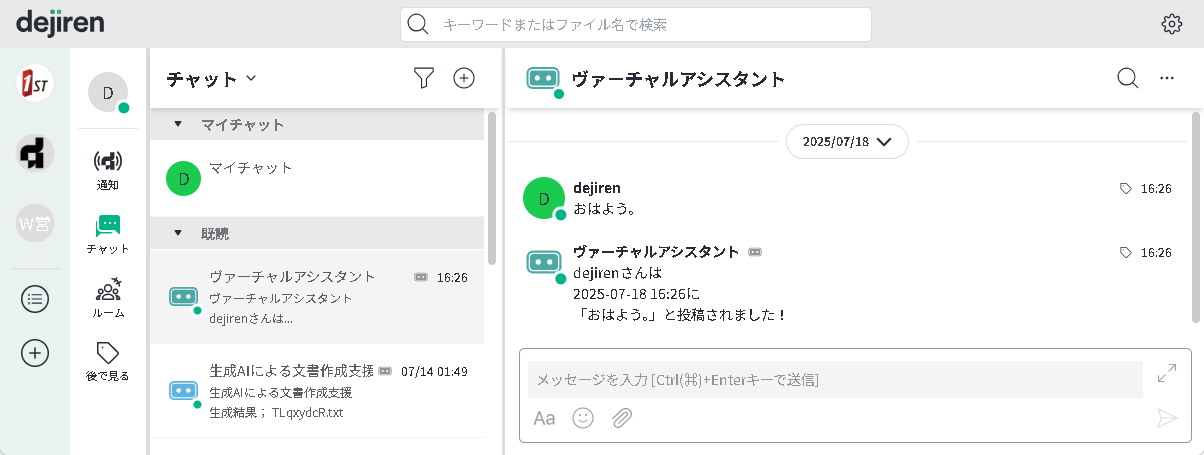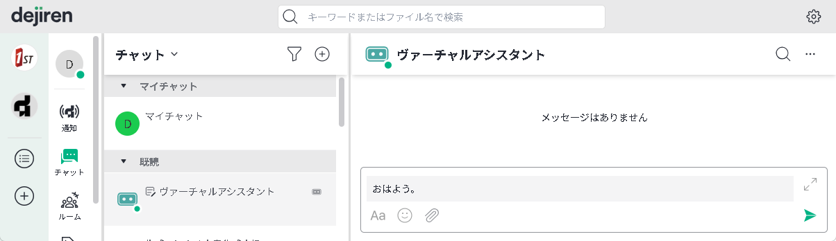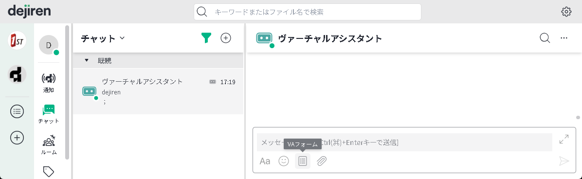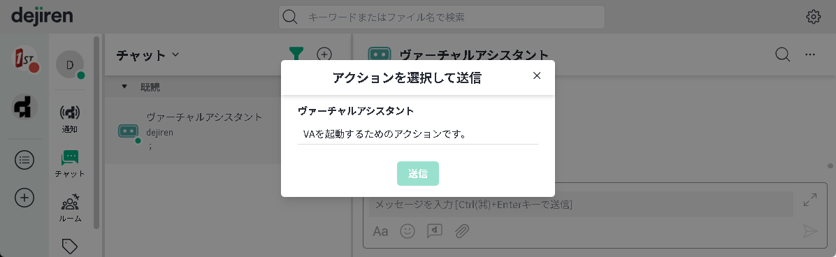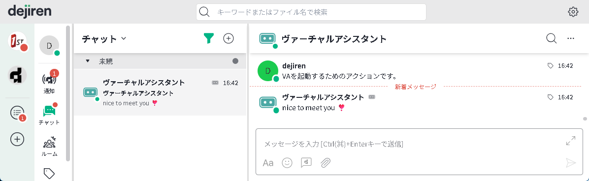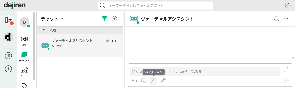 dejiren のチャットやルームにいる VA に話しかけることで、VA が動作します。