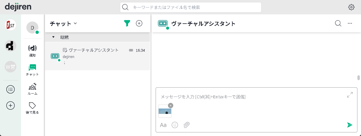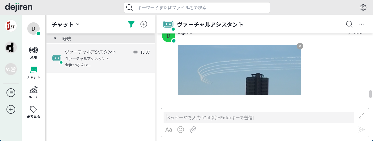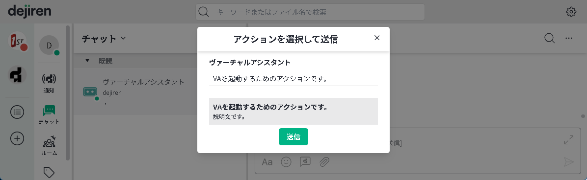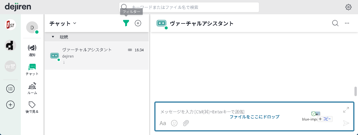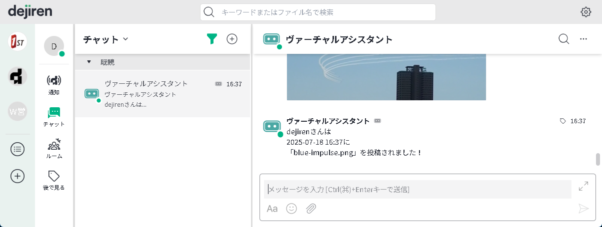 dejiren のチャットやルームにファイルを投稿することにより VA が起動します。
