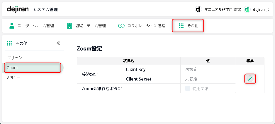 ・dejiren のシステム管理画面での Zoom 連携機能設定