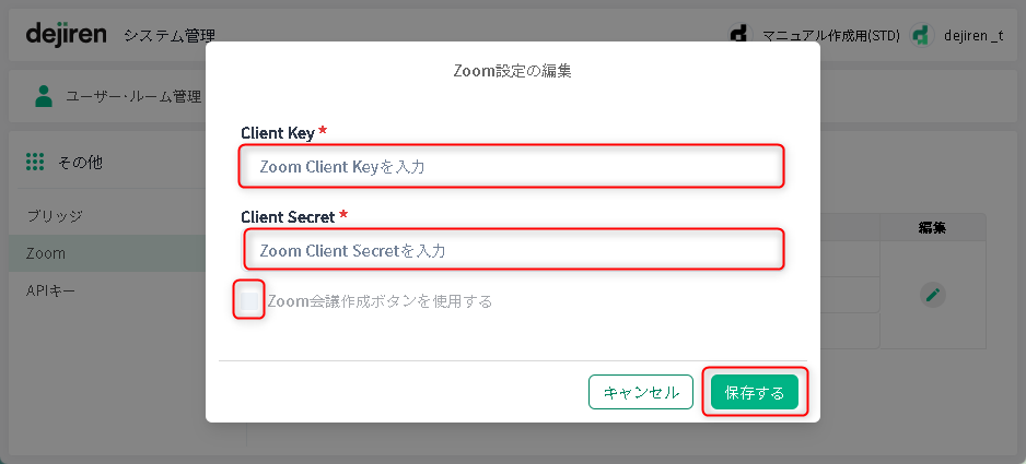 2. dejiren のシステム管理画面で Zoom 接続の設定