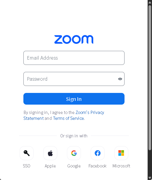Zoom アカウントが他の認証システムと連携している場合には、そちらでの認証も可能です。
